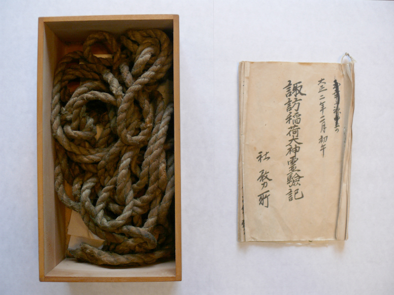 お稲荷さまを深く信仰していた、五万石騒動で有名な丸茂元次郎翁には、お稲荷様が身代わりに立たれ、直訴に行った江戸の町中で彼を助けられたという話が残っています。その時の麻縄が有名な「ぬけ縄」であり、貴重なものとして当社に保存されています。
