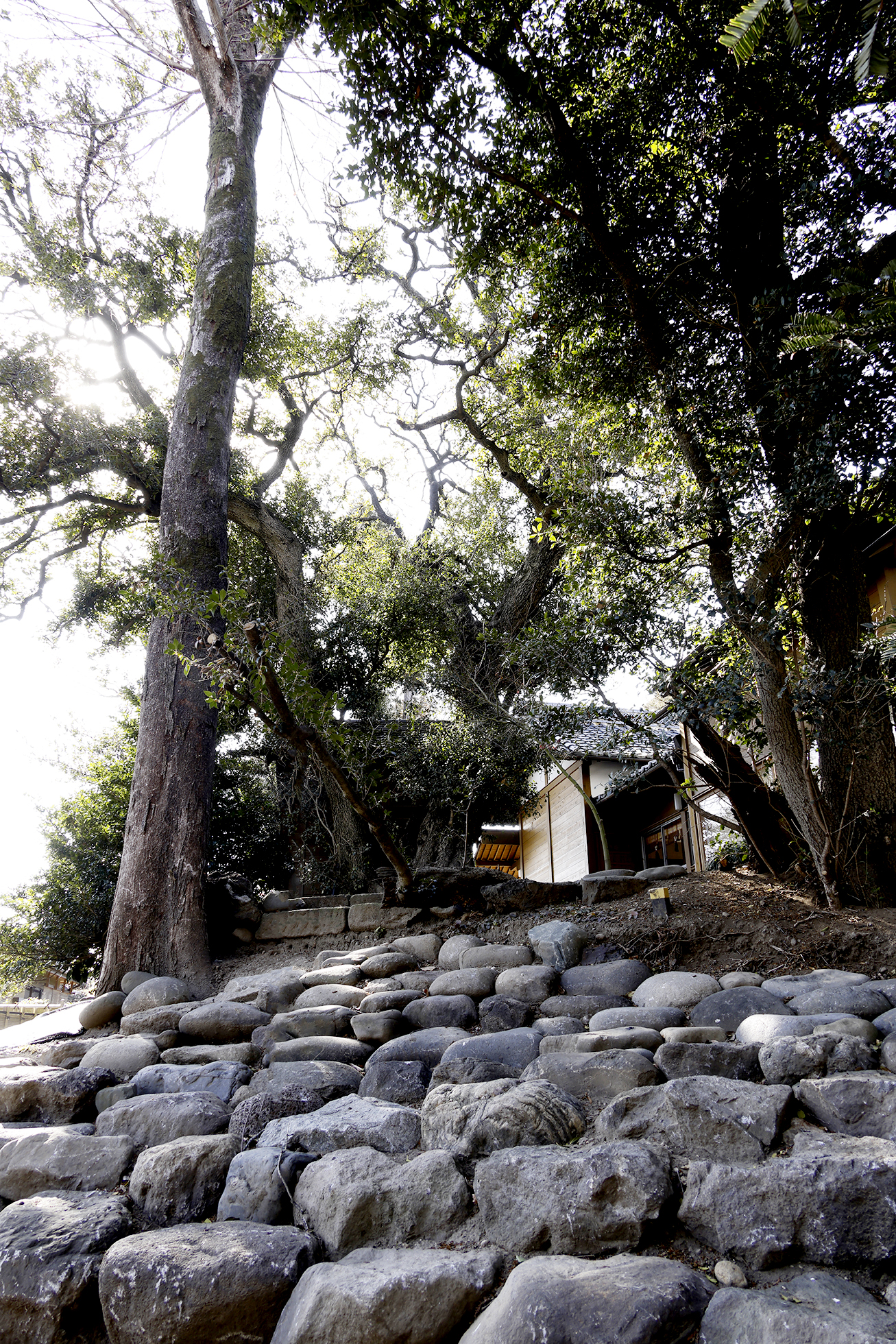 当社には珍しい石があります。力石とも油石ともいわれている卵型をしていた石で、直径は27センチ・長さ70センチです。いつの頃からか村の青年達が力競べをして担いだ石だと言われています。